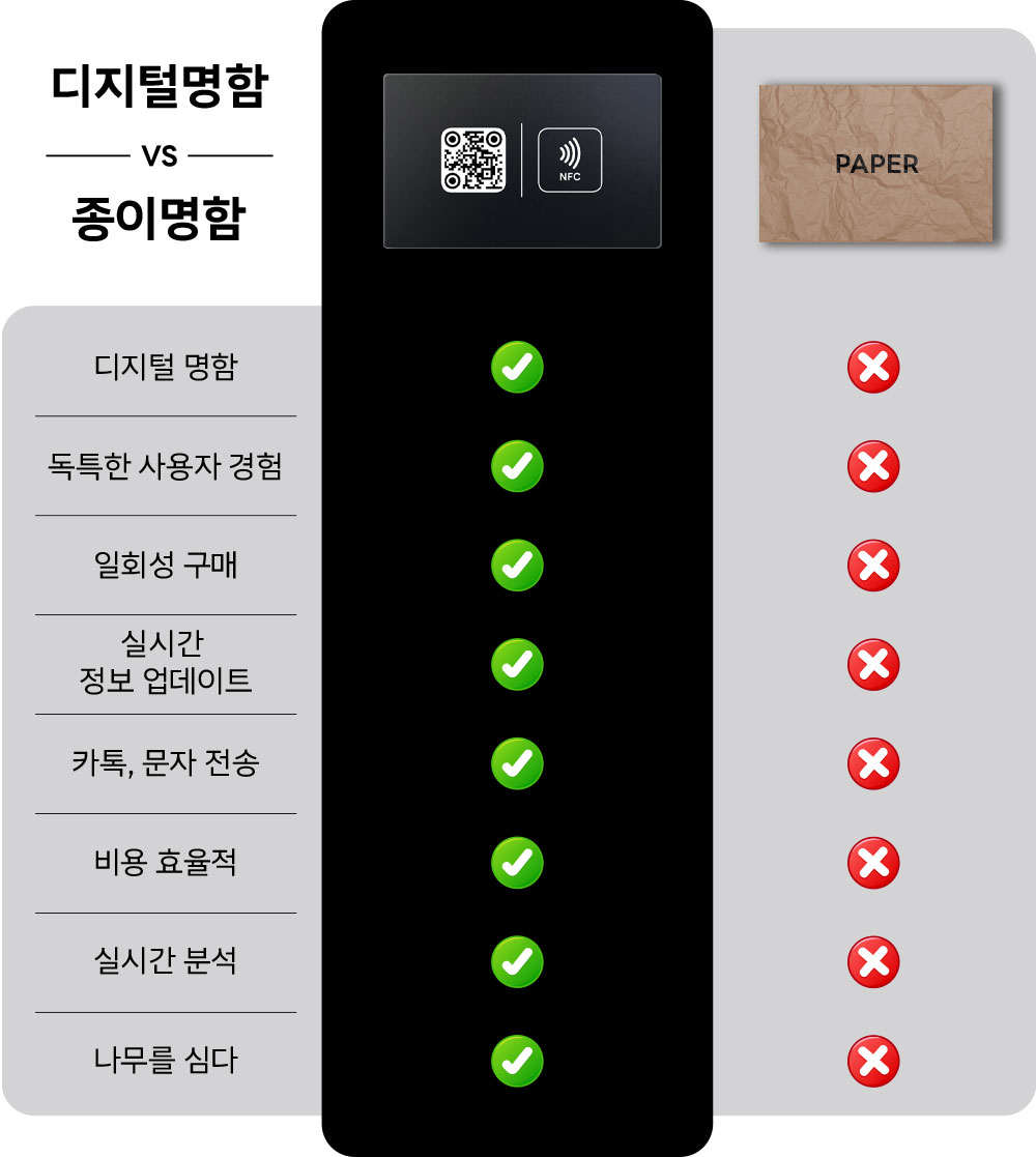 종이 명함을 인쇄하기 위해 매년 700만 그루 이상의 나무 가 베어집니다. 디지털 명함으로의 전환은 책임감 있고 지속 가능한 비즈니스를 수행하는 데 도움이 됩니다.