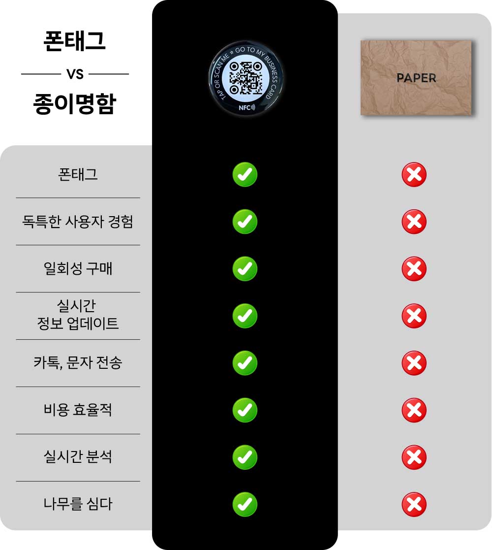 다른 사람들이 귀하의 정보를 수신하기 위해 탭미 또는 앱이 필요 없습니다. 그냥 💳 탭하거나 스캔하기만 하면 끝. 정말 간단합니다.