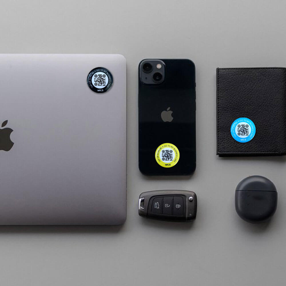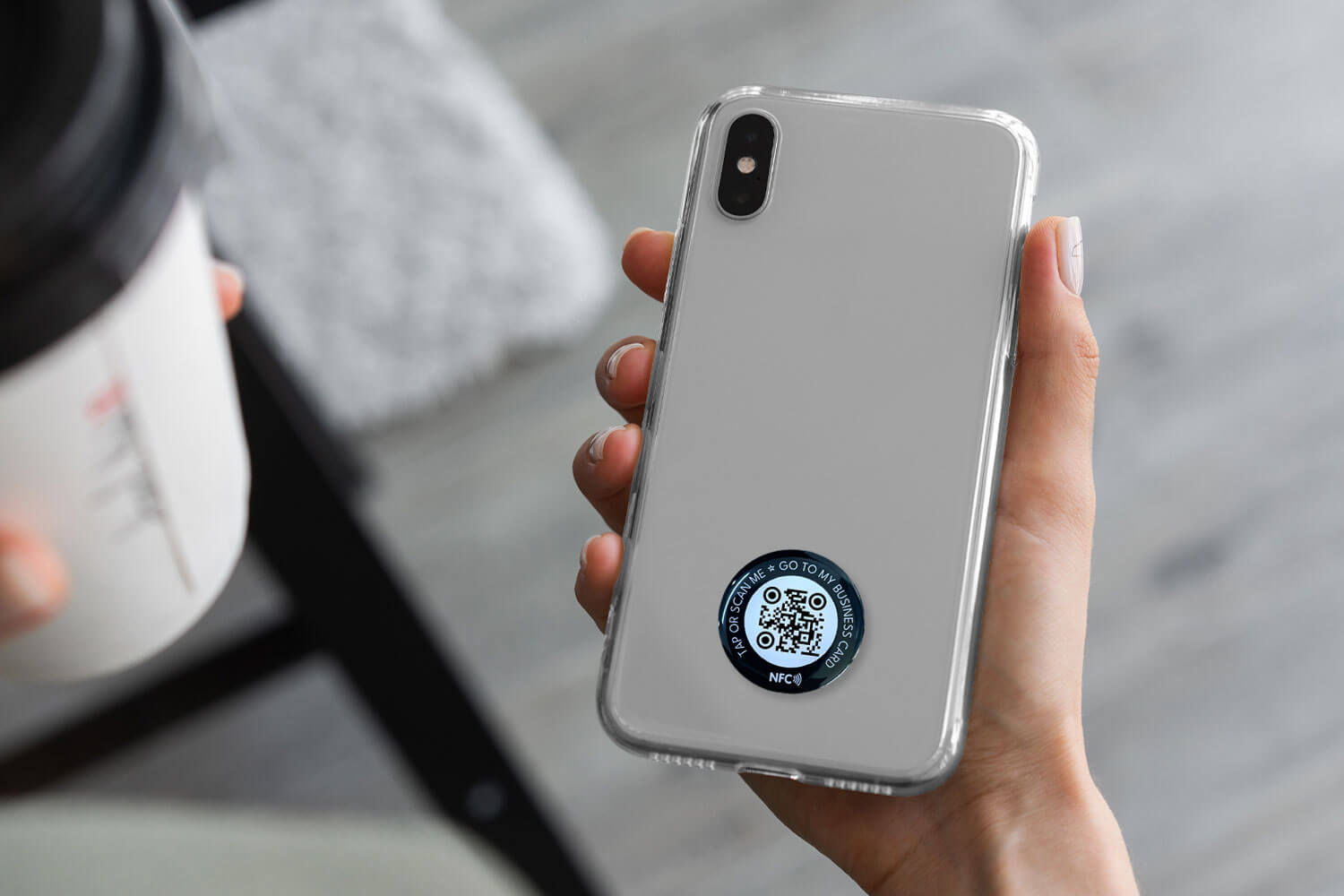 📱 핸드폰 뒷면에 갖다 대기만 하면 원하는 정보를 공유할 수 있는 NFC(Near Field Communications) 기술이 내장된 스티커입니다.